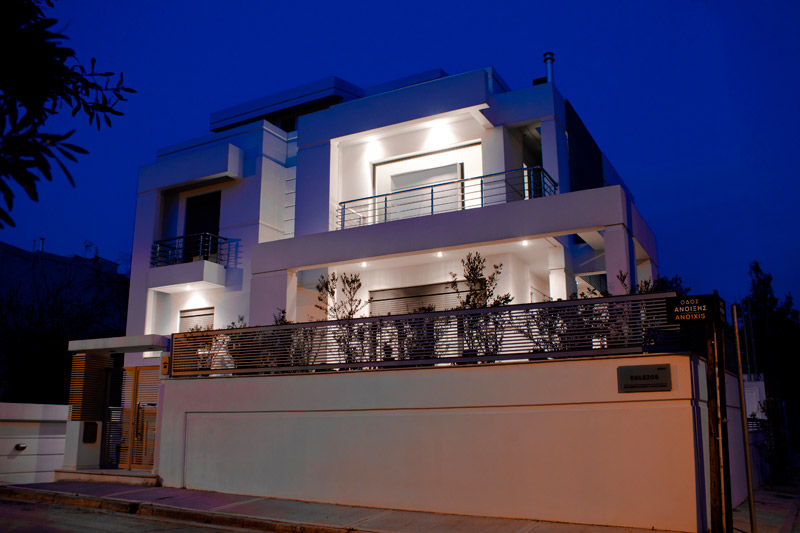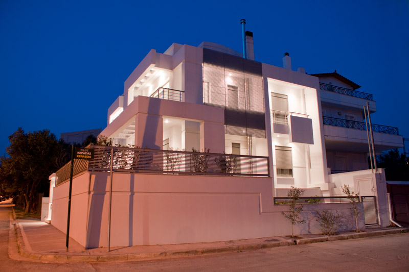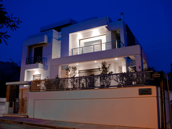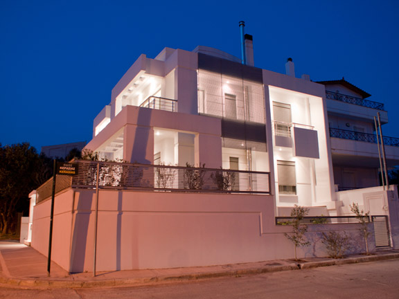 Κατασκευή 2010 Στο κτίριο αυτό αναπτύσσεται σε 4 επιπεδα η κατοίκια τριμελούς οικογένειας. Υπάρχει play room στο υπόγειο, εσωτερικό αίθριο με εξώστη καθώς και σοφίτα.
