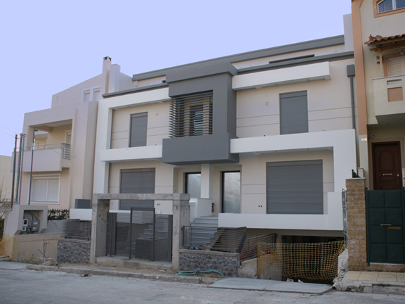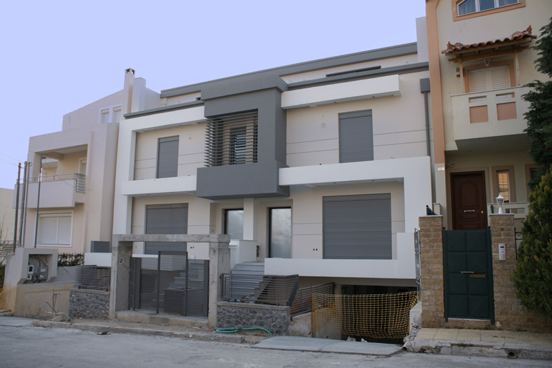 Στάδιο κατασκευής: εξωτερικοί χρωματισμοί και τοποθέτηση πλακιδίων και ξύλινων δαπέδων.